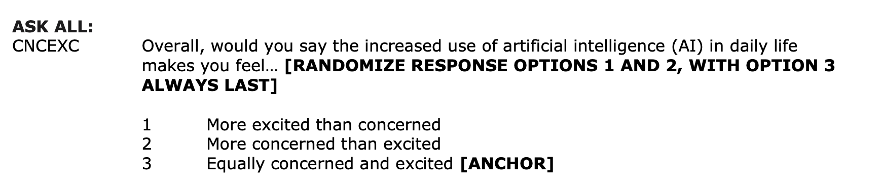 ai_concern: Whether a respondent said they are “more concerned than excited” about in the increased use of AI in daily life (1: yes, 0: no)
