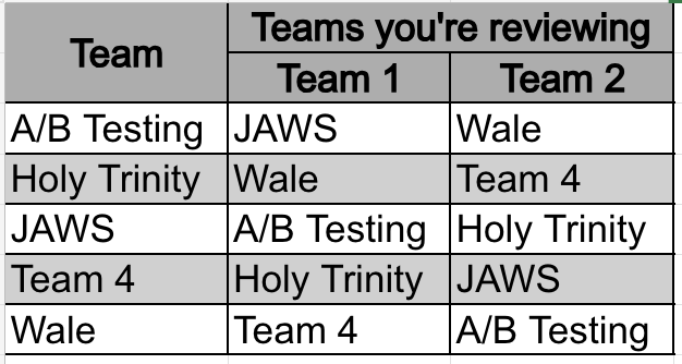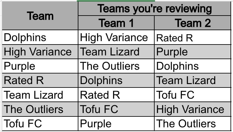 For each team you’re reviewing…